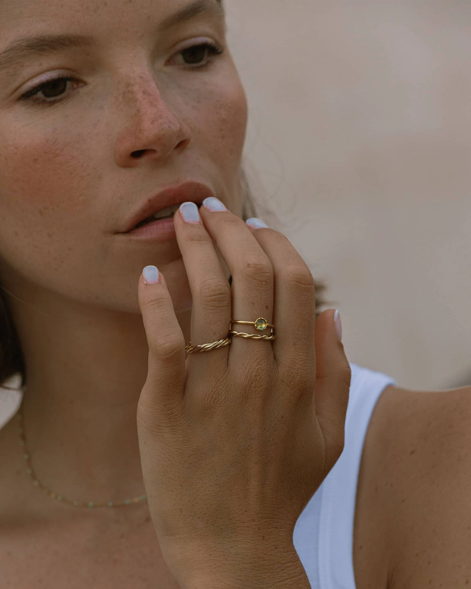 Bague fine composée de fils torsadés en plaqué or