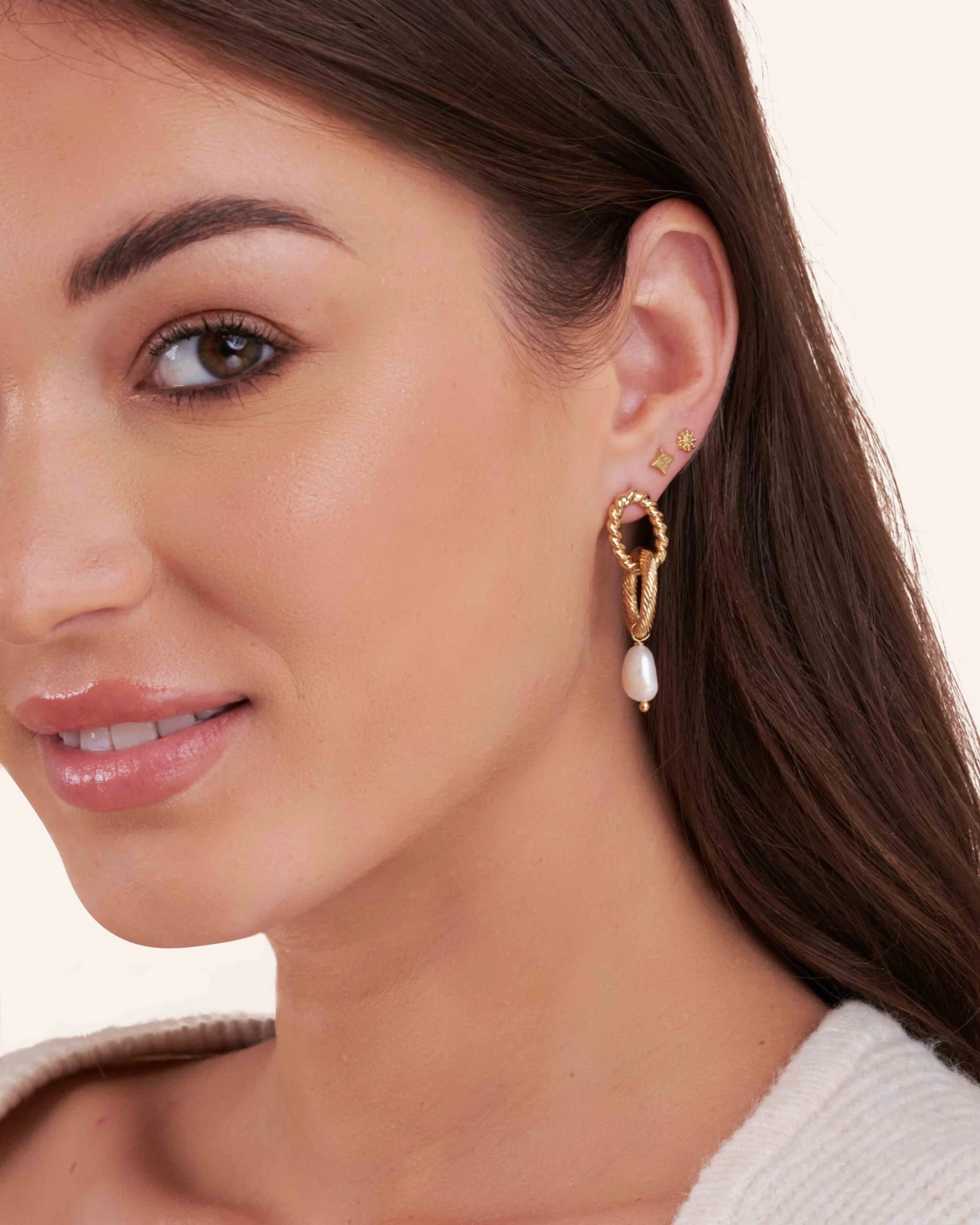 Boucle d’oreille puce en forme de losange en plaqué or.