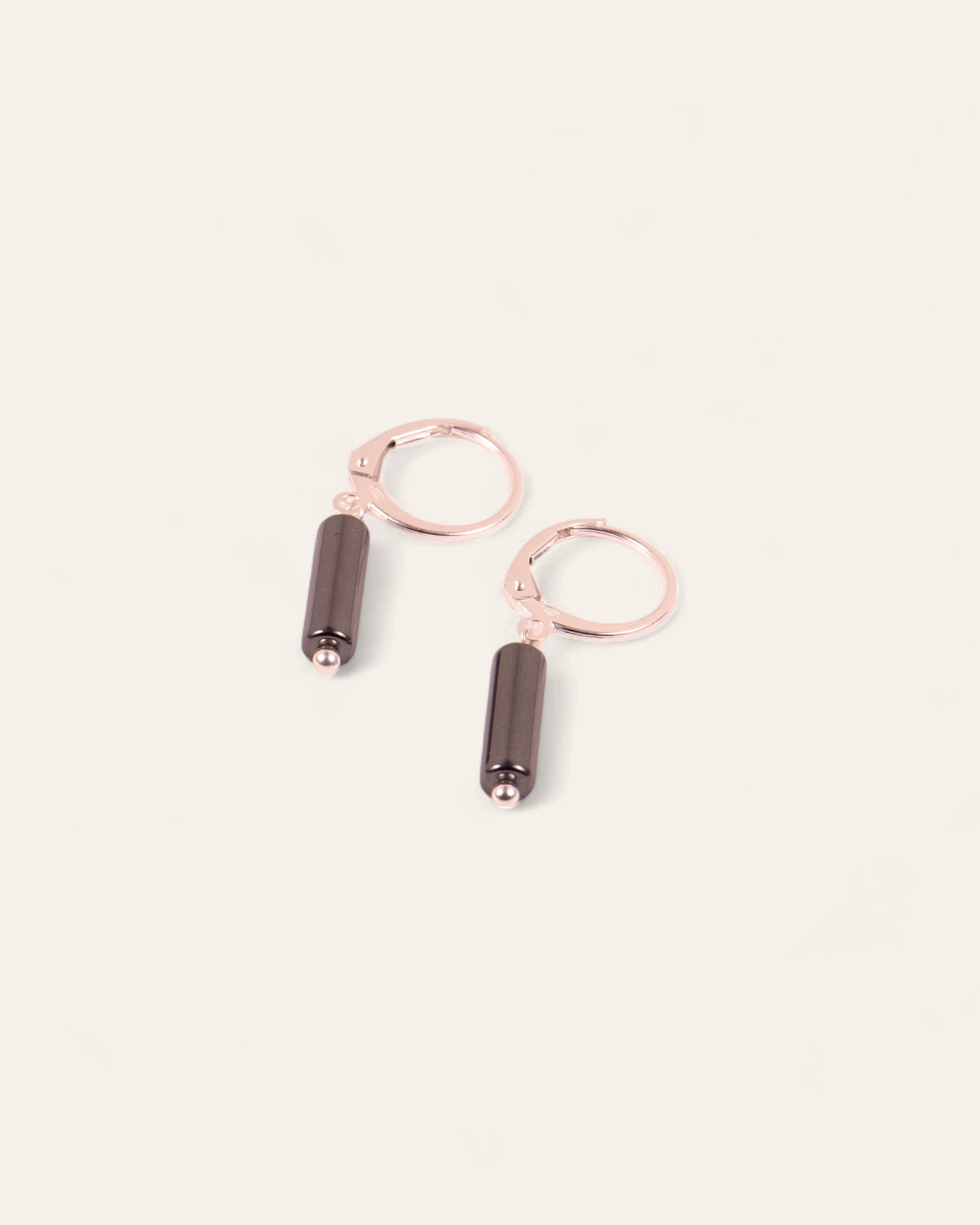 Dormeuses arrondies en argent massif avec une pierre allongée d’Hématite