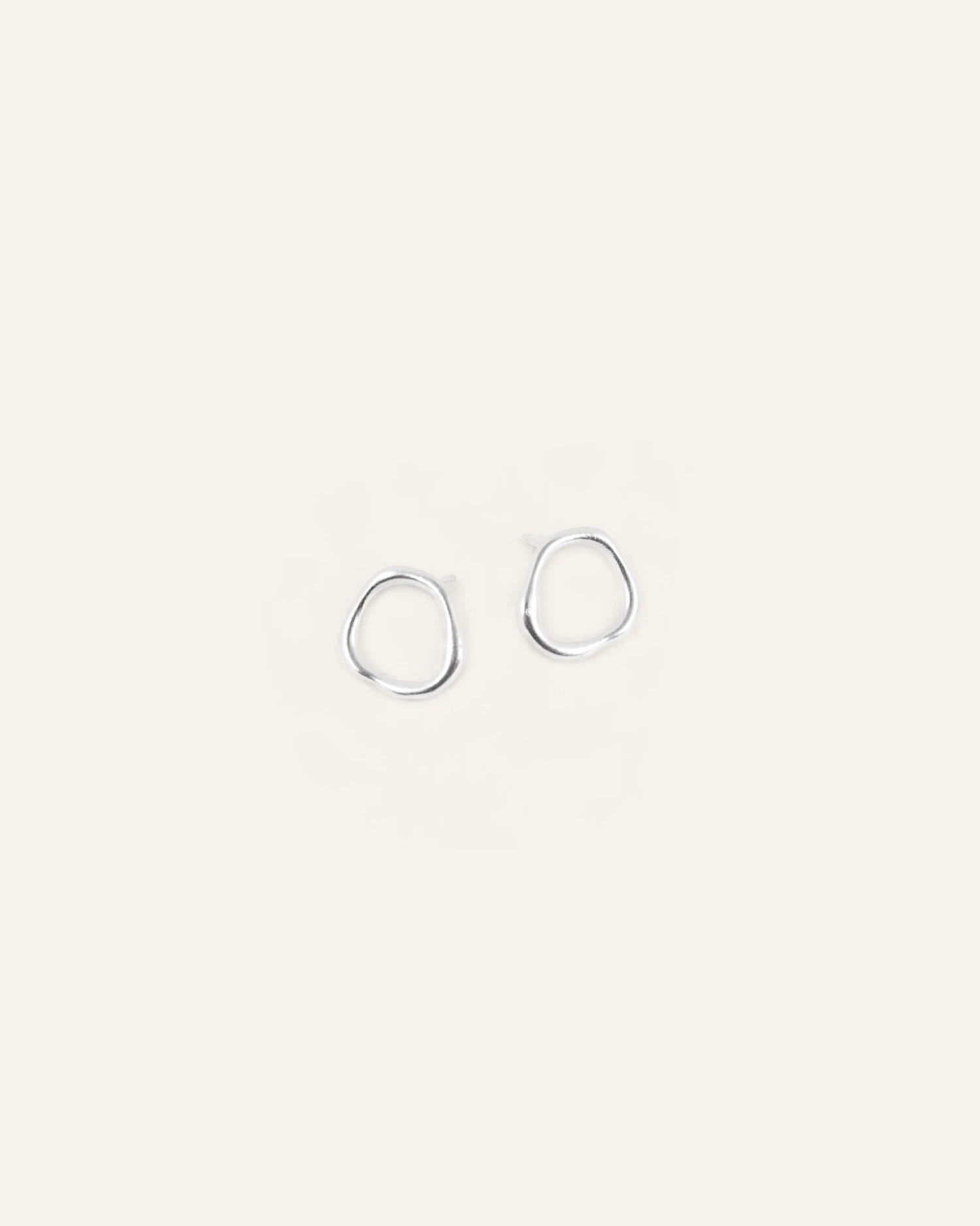 Boucles d’oreilles en argent massif ronde déformée. Accumulables avec d’autres boucles de nos collections.