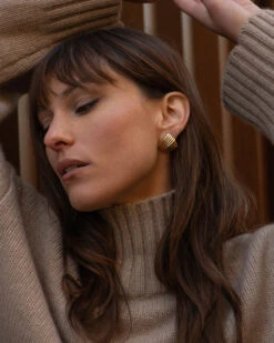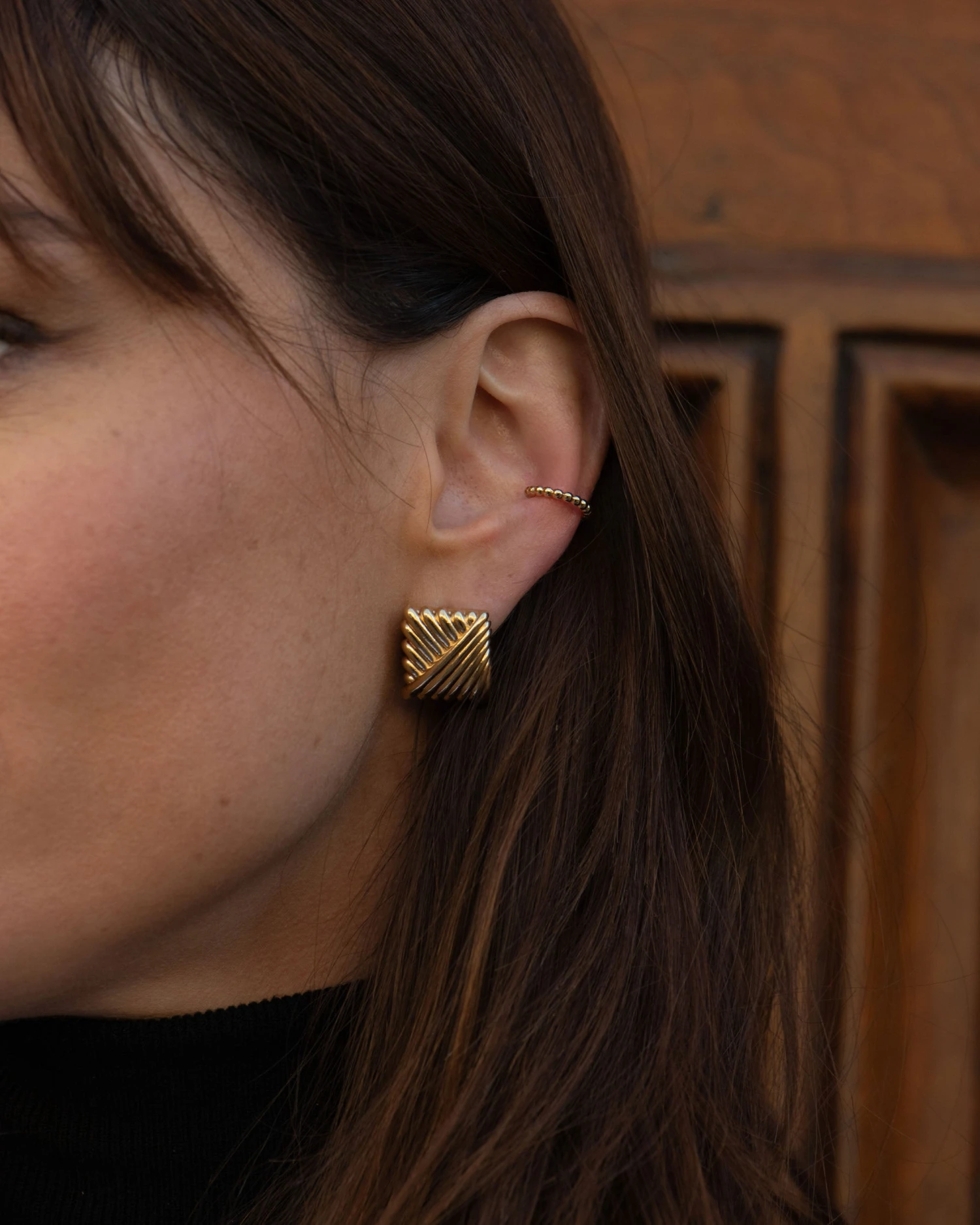 Boucles d’oreilles rectangulaires aux tendances 90’s dorĂ©es Ă l’or fin.
