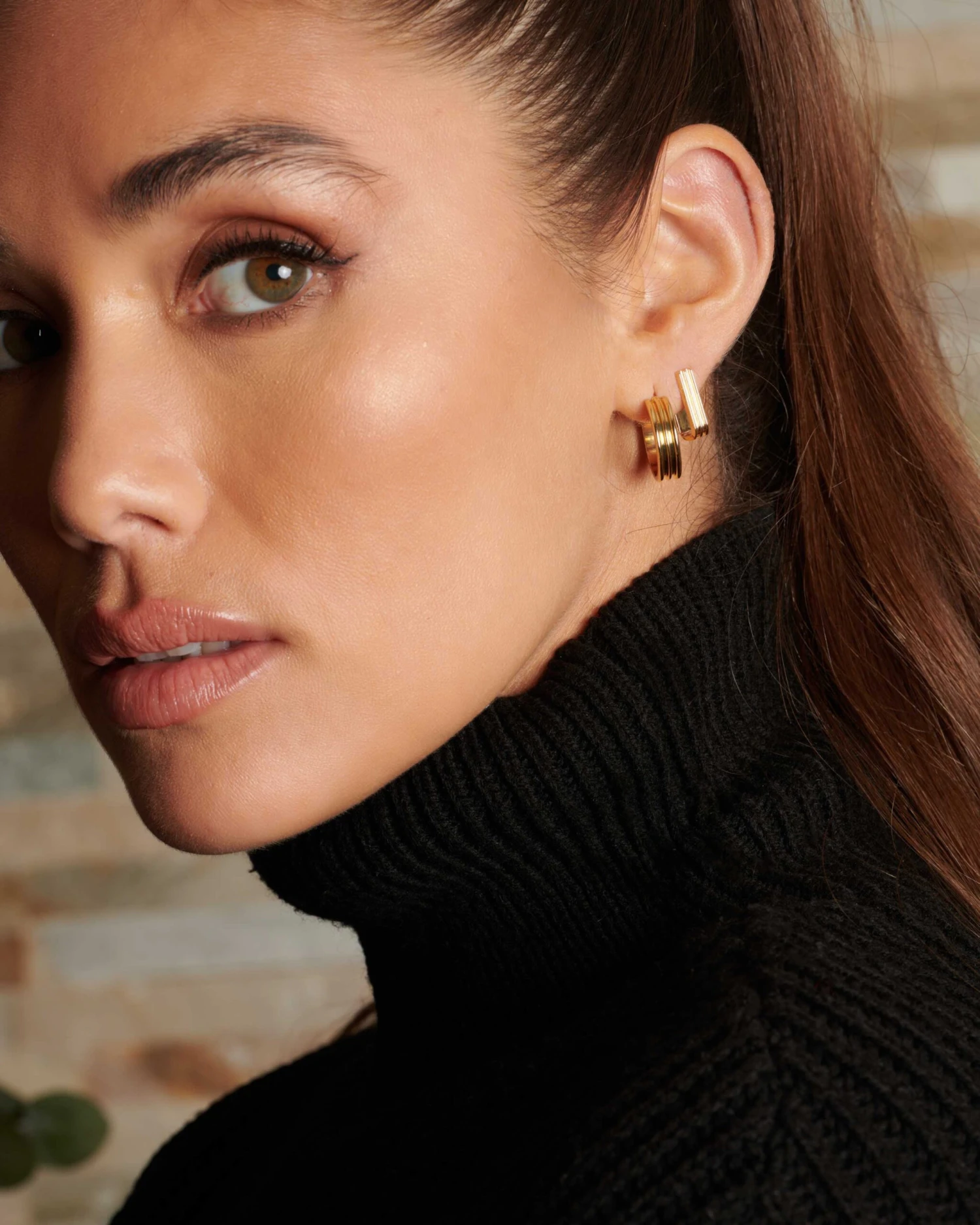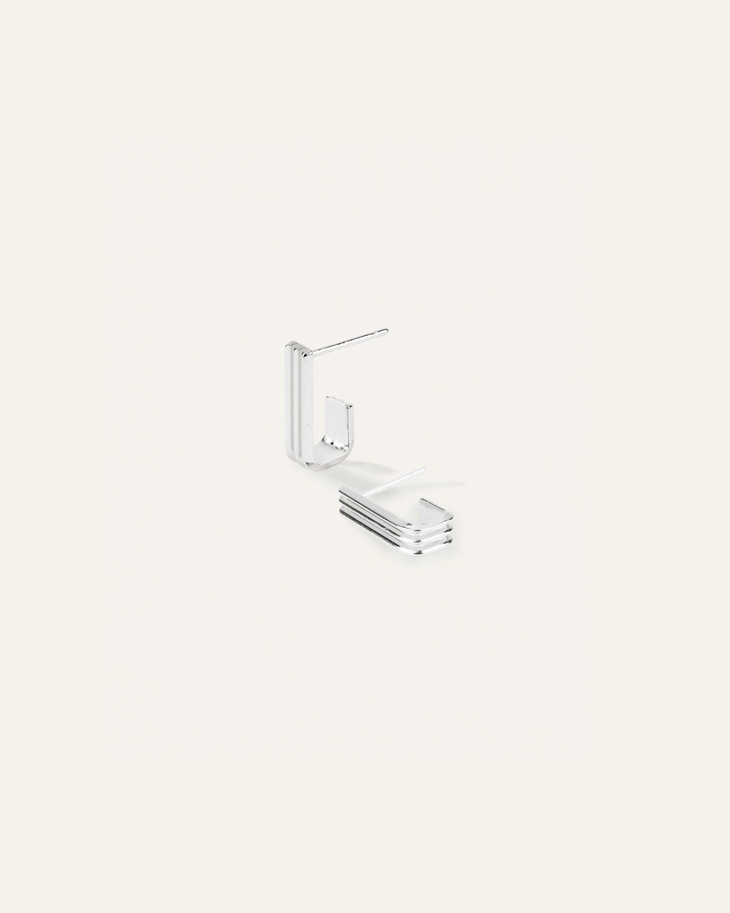 Boucles d’oreilles rectangle au motif rayure. Accumulable avec d’autres boucles d’oreilles de nos collections.
