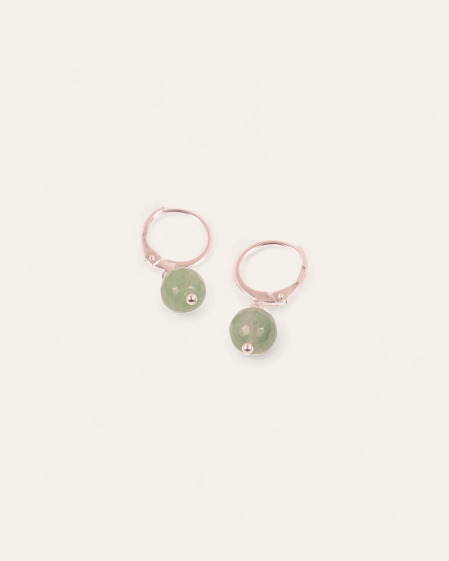 Dormeuses arrondies en argent massif avec une pierre facettĂ©e d’Aventurine de 8 MM