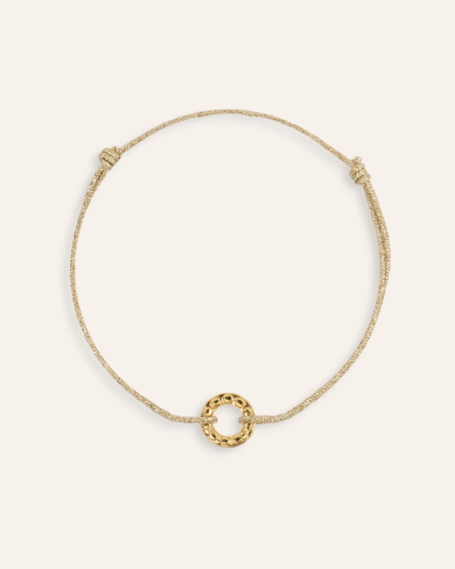 Bracelet cordon ajustable composé d’un anneau orné de délicates petites boules en plaqué or.
