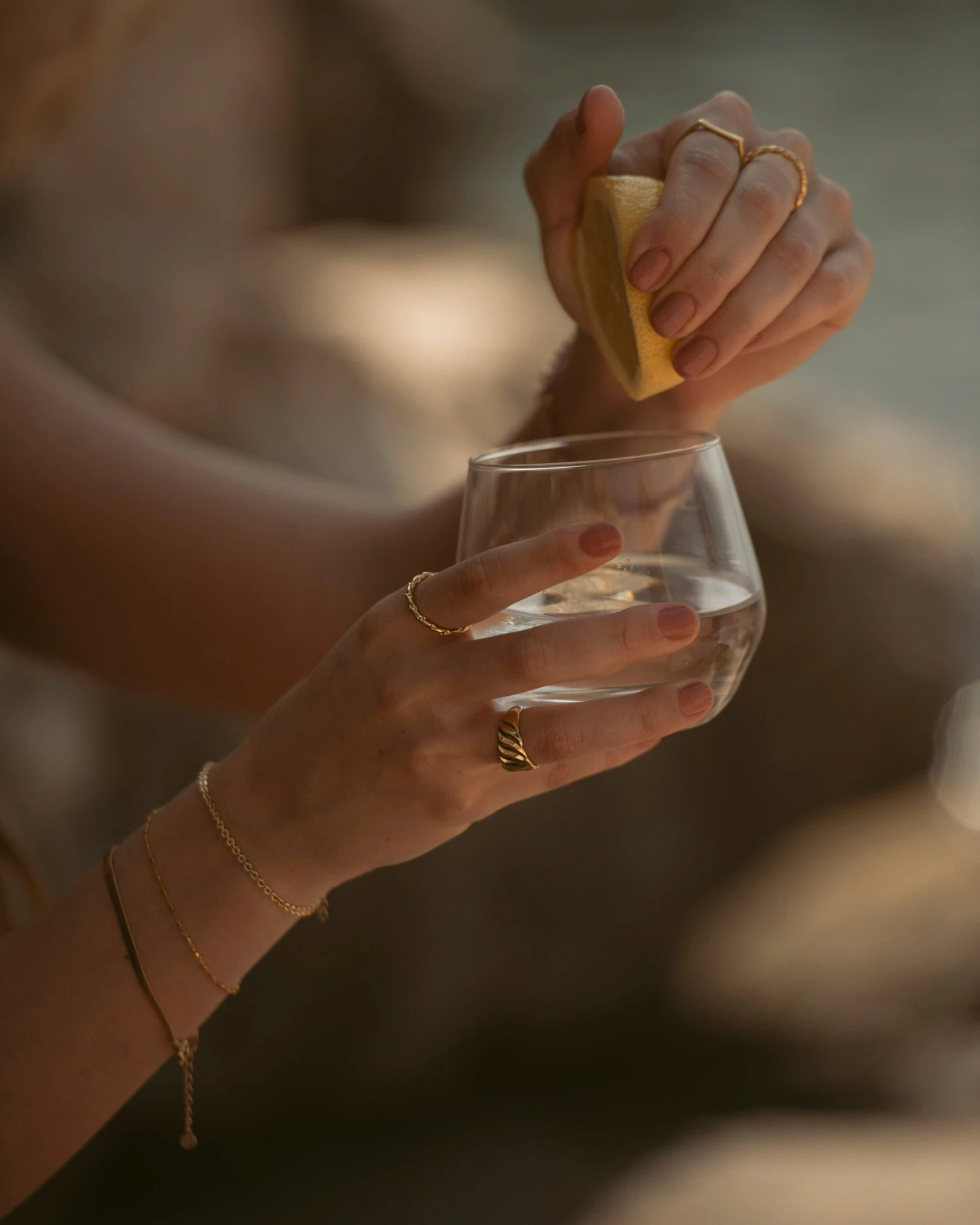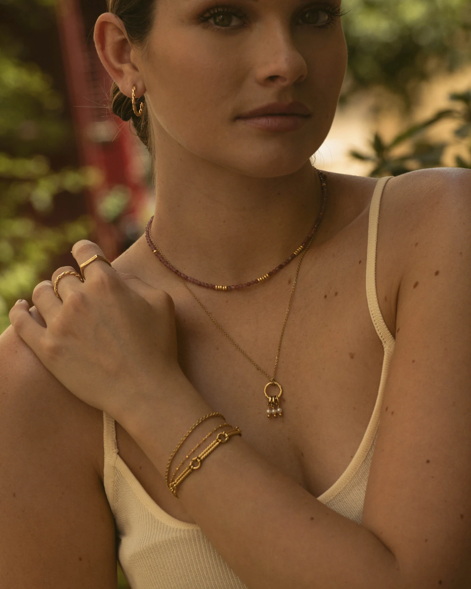 Bracelet maille soleil en plaqué or. Accumulable avec d’autres bracelets de nos collections.