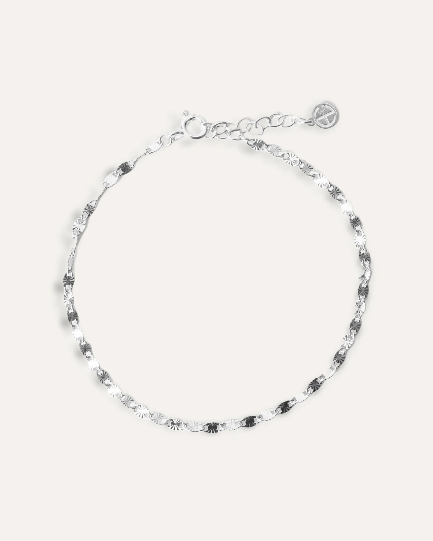 Bracelet fin en argent massif composé de petits soleils striés entrelacés.