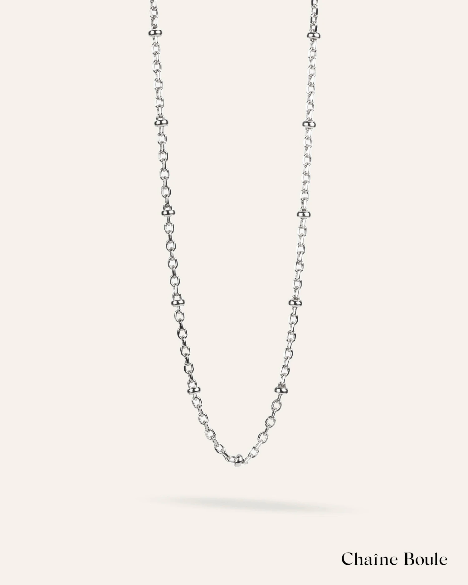 Chaîne sautoir de type boule en argent. Associez-la selon vos envies à nos nombreux pendentifs disponibles à l’unité pour créer un bijou unique.