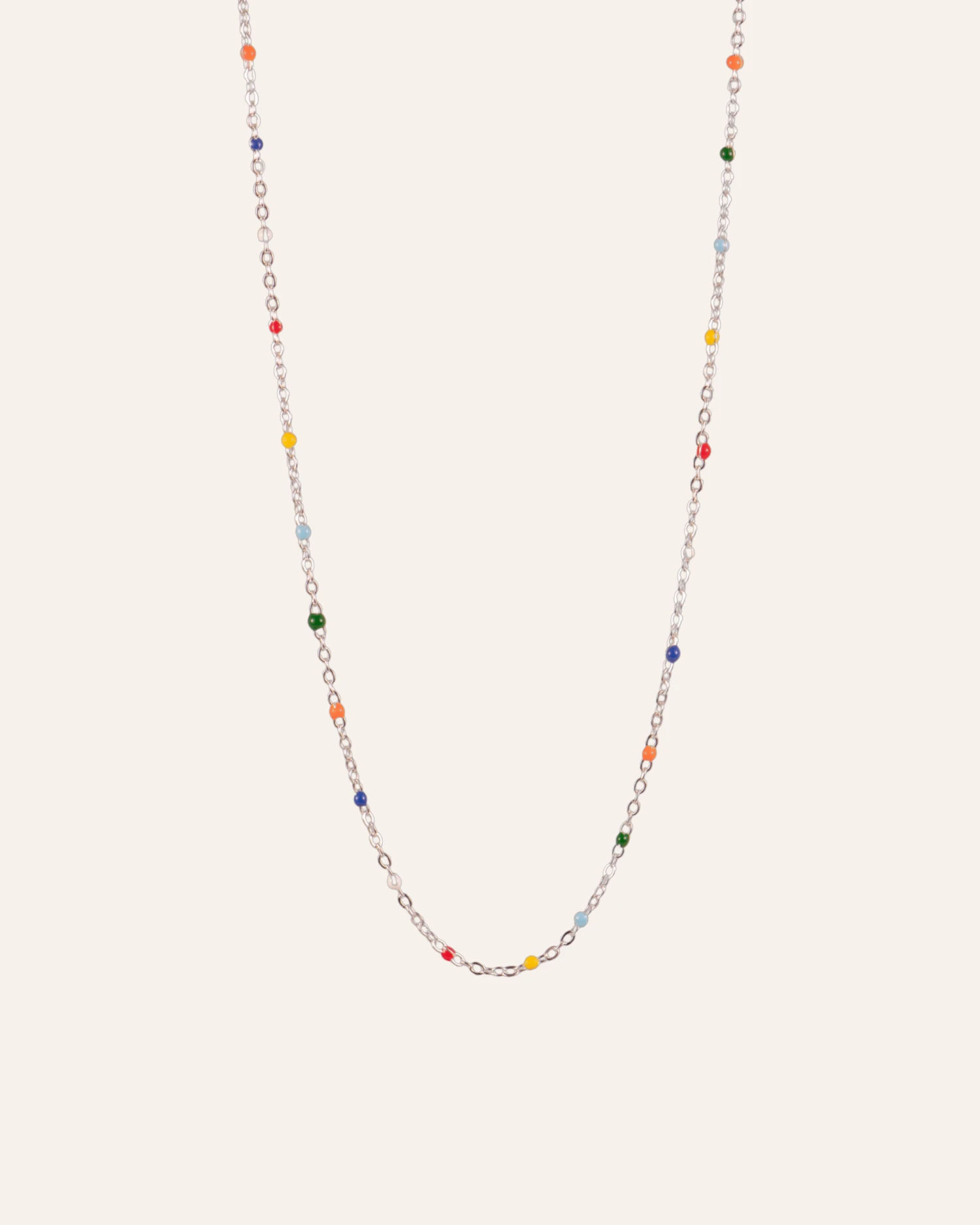 Collier en argent massif 925 avec des perles d’Ă©mail multi couleurs.