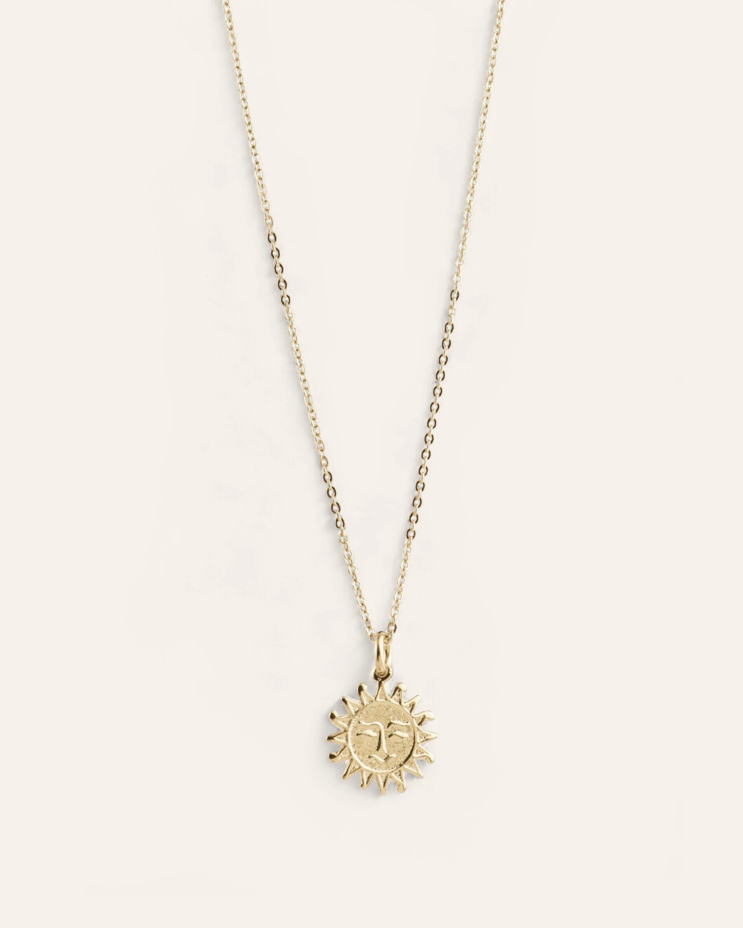 Collier avec une médaille soleil montée sur une chaine fine en maille forçat doré à l’or fin.