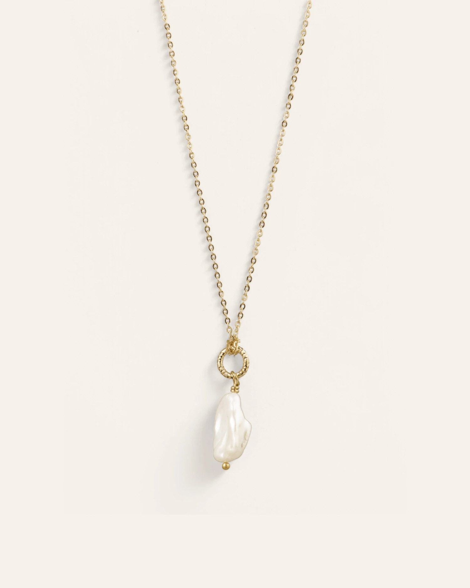 Collier en plaqué or avec une perle de culture de forme rectangulaire aléatoire.