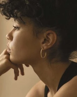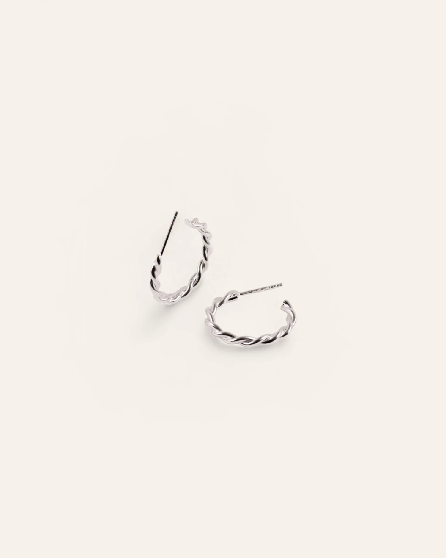 Créoles fines torsadées en argent massif. Accumulables avec d’autres boucles de nos collections.