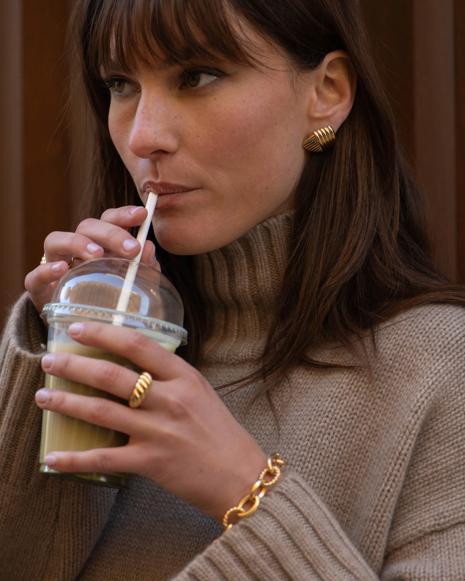 Grandes boucles d’oreilles triangulaires aux tendances 90’s dorées à l’or fin.