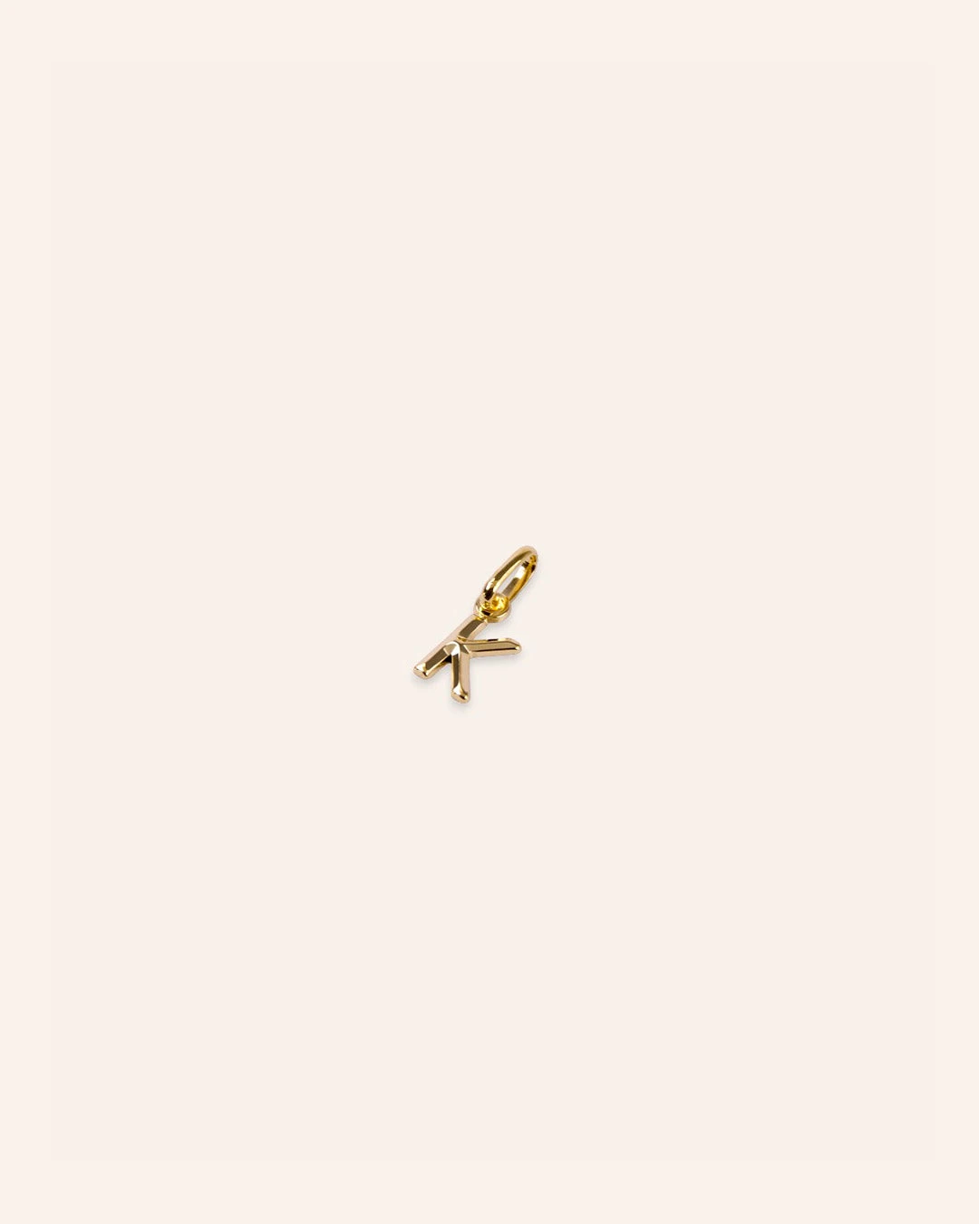 Pendentif lettre K en plaqué or. Accumulable avec d’autres bijoux de nos collections.